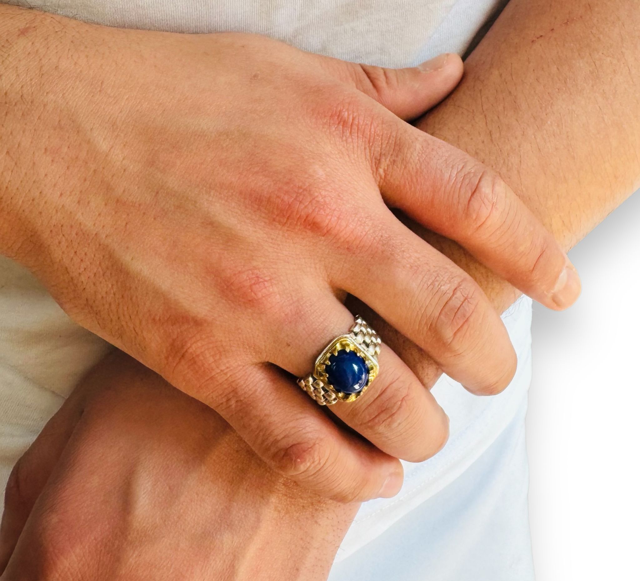 Handgefertigte Lapislazuli 925er Silberring vergoldet