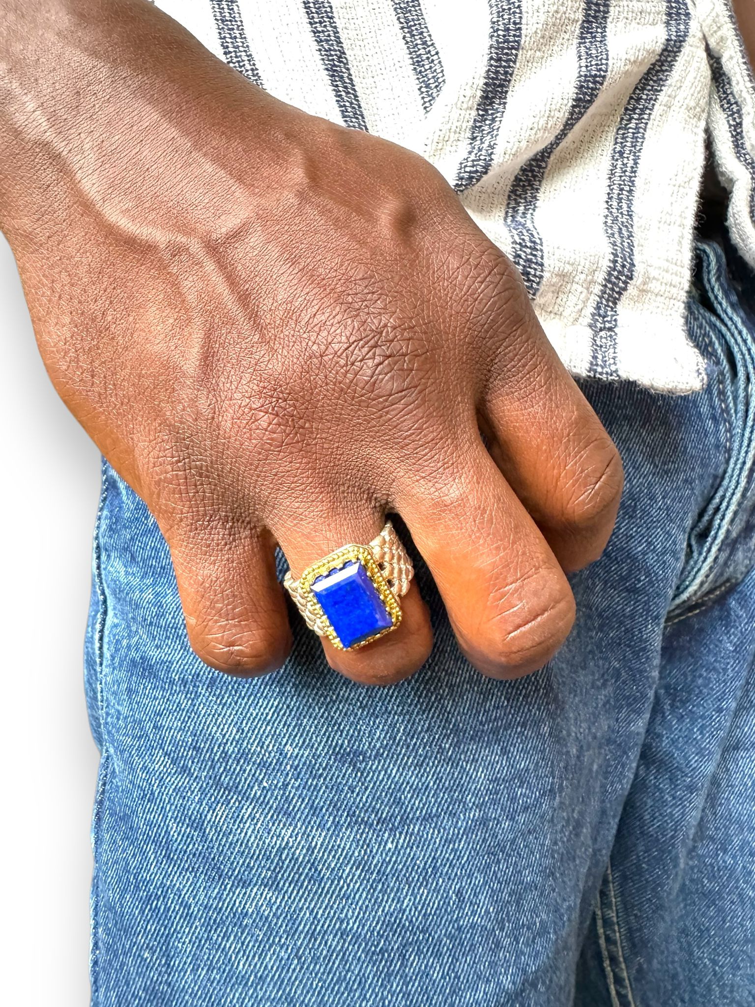 Handgeschliffene Lapislazuli 925er silberring high quality ring vergoldet Größe 63